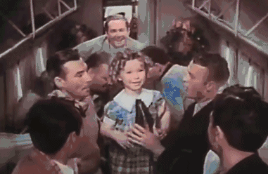 在电影《亮晶晶》的经典片段之一中,秀兰邓波儿被两排男人托举着跳舞,最后自己拽了拽裙子