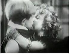 年仅五岁的秀兰邓波儿在“polly tix in Washington ”中饰演“妓女”,走向裸着上身的“参议员”献出荧幕初吻